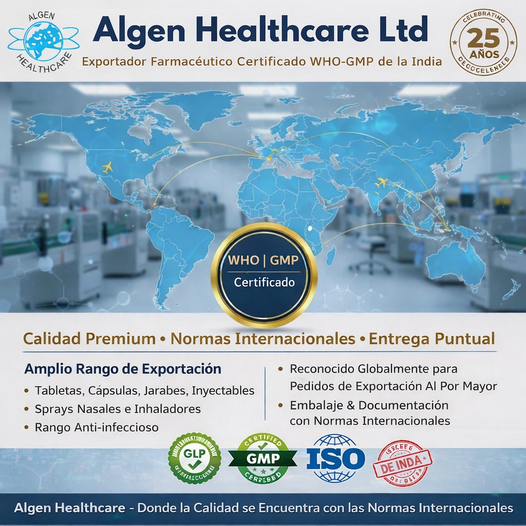 Algen Healthcare Ltd es un fabricante farmacéutico certificado WHO-GMP con COPP disponible, especializado en la exportación global de productos farmacéuticos de alta calidad.